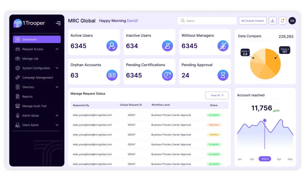 Enhanced dashboards with structured layouts for quick visibility into compliance and access status.
